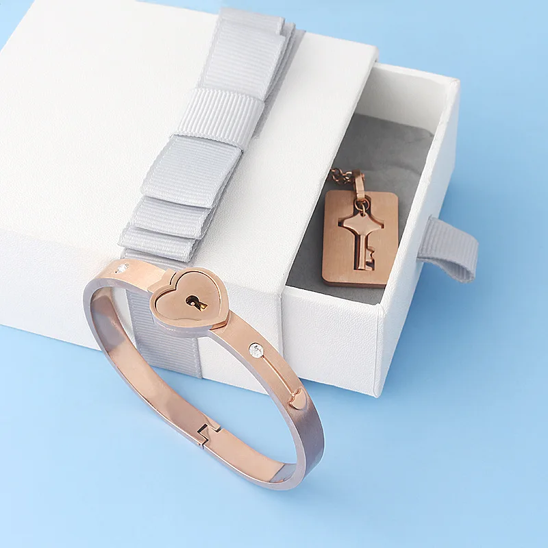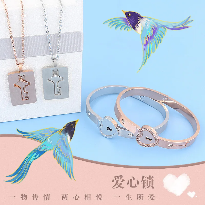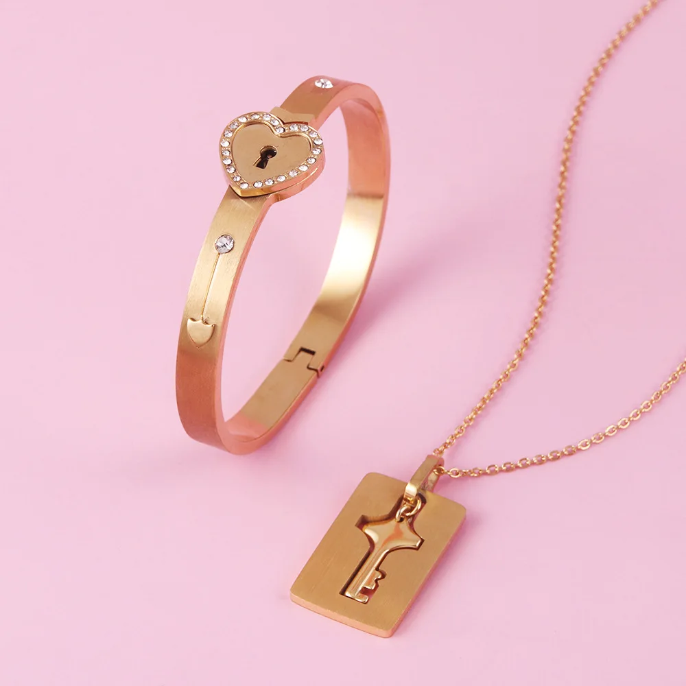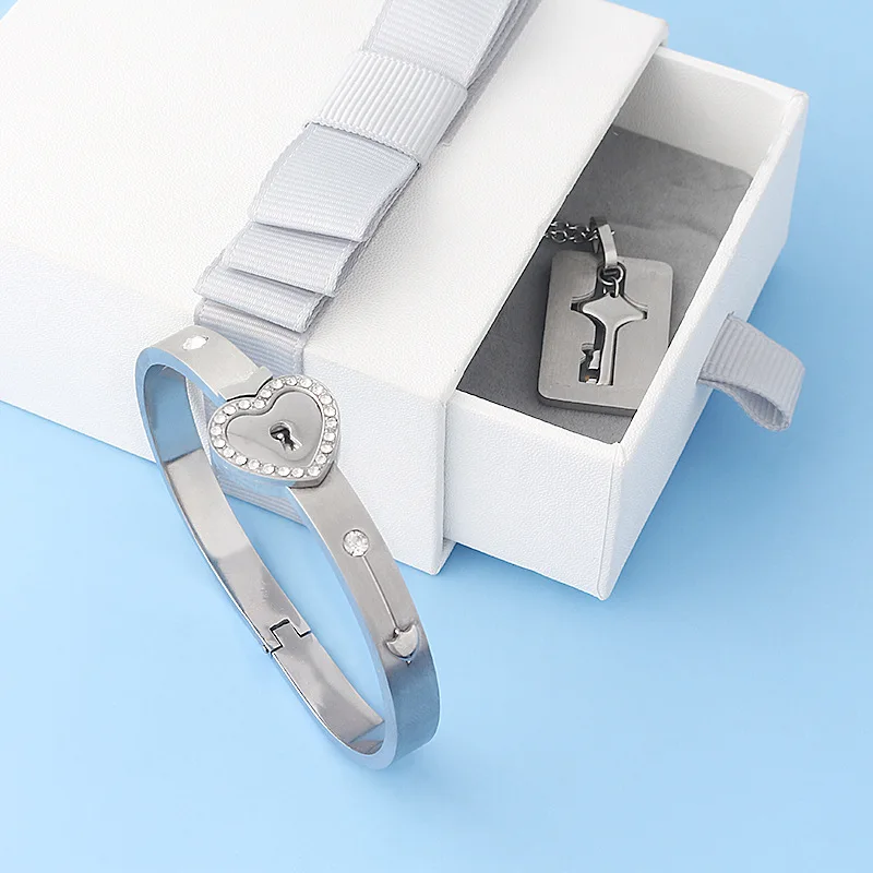 Valentine's Day Stainless Steel Bracelet Love Lock Bracelet Can Be Opened Key Pendant Necklace Men And Women Couple Jewelry Gift